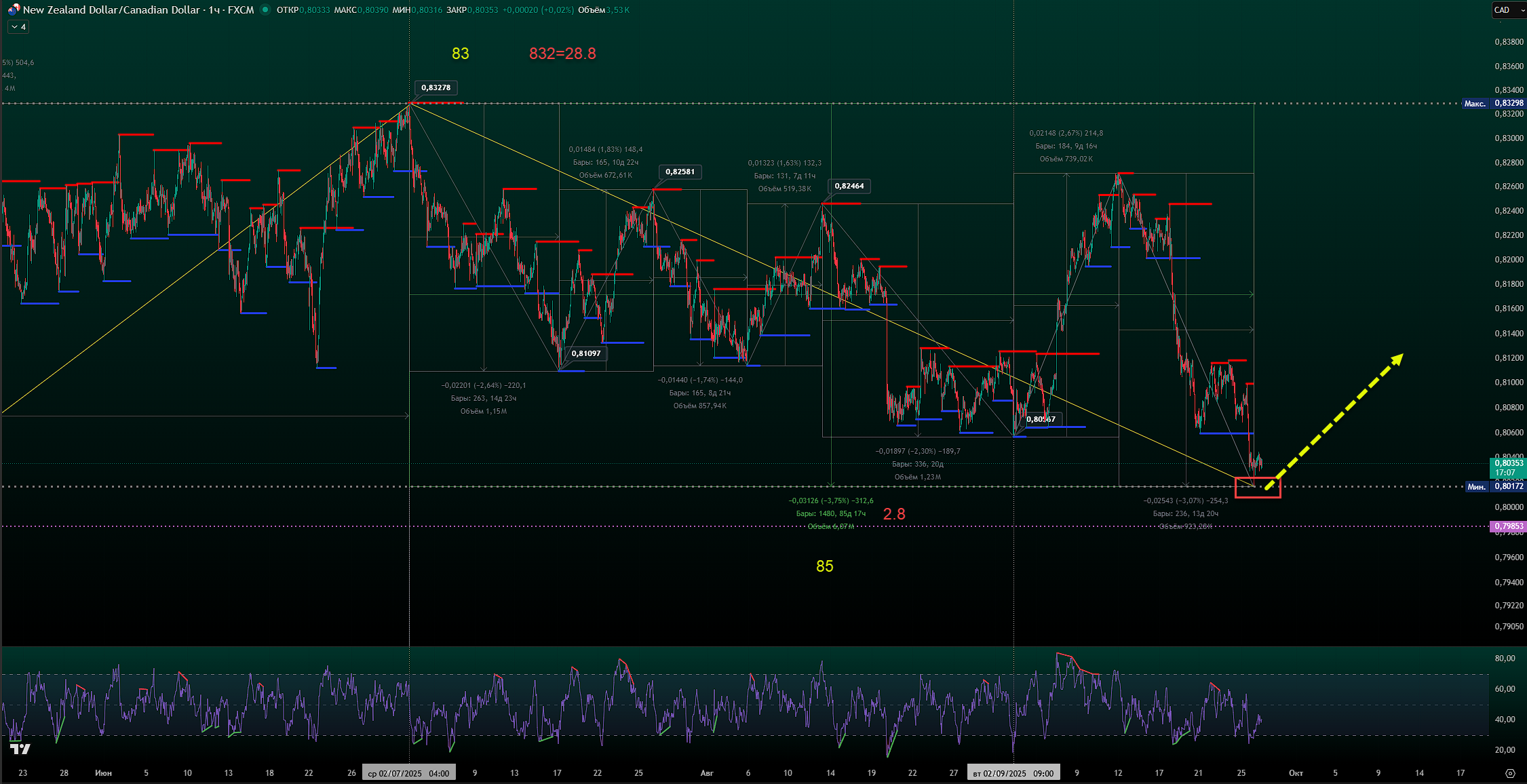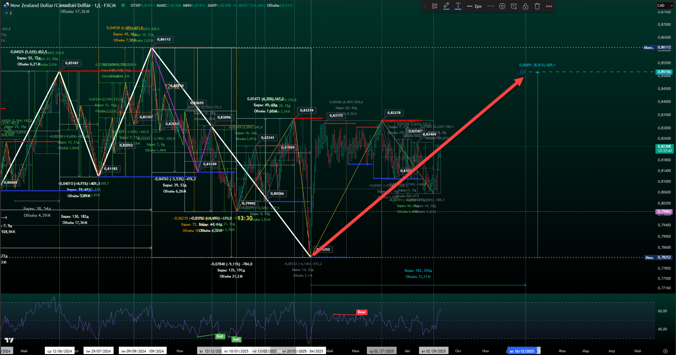 Жду завершения нисходящего движения в паре 7 февраля 2025 г. (+/- 1 единица времени )
