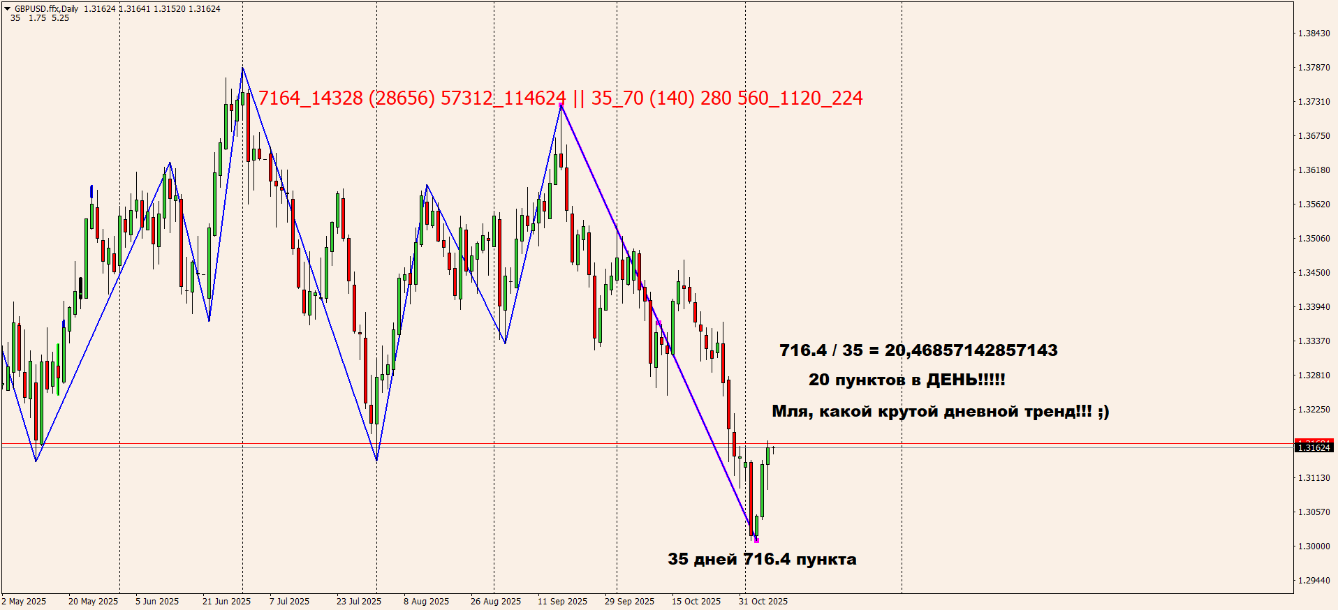 1,4 дня = 24+0,4*24=24+9,6=33,6=33-34 часа - смотрим картинку - есть реакция вниз, и кстати, сюда пришло и указание от 200 п: 0,2 недели = 0,2*168=33,6 часа = 33-34;